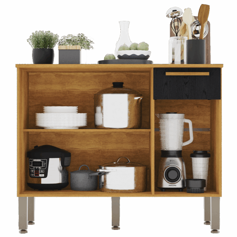 Balcão 3P1G Madri Cinamomo/Preto – SALLÊTO – 1.05m