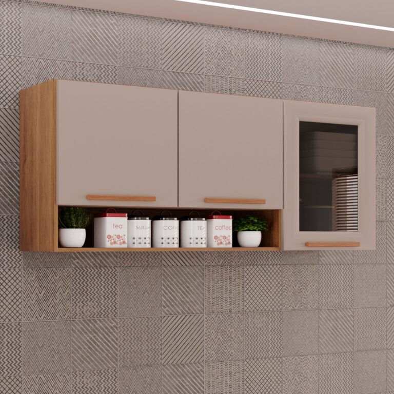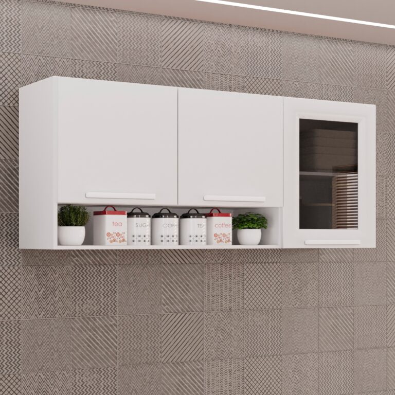 Armário Aéreo 3 portas Vidro Fumê New Valência – Sallêto – 1,20m – 2.4/LD/SR 2.2/TD