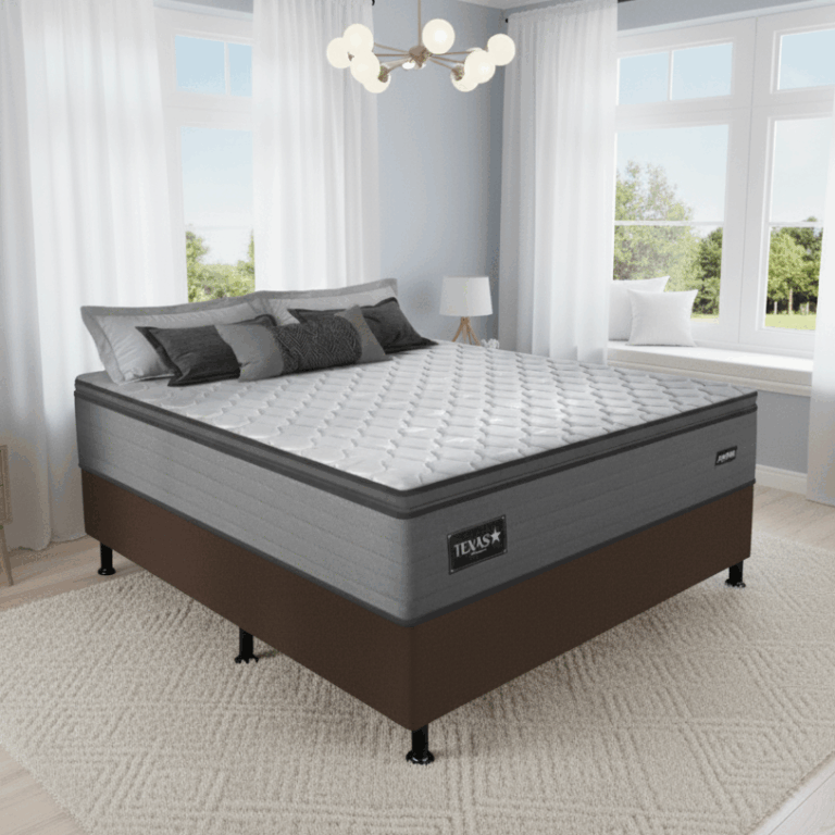 Colchão Casal Texas D28 + Base Box Simples – GAZIN COLCHÕES + ALTO NÍVEL – 1.38m