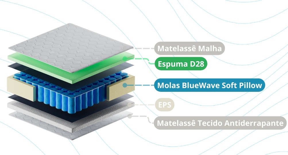 • Sistema de molas ensacadas BlueWave Soft Pillow semi blindadas