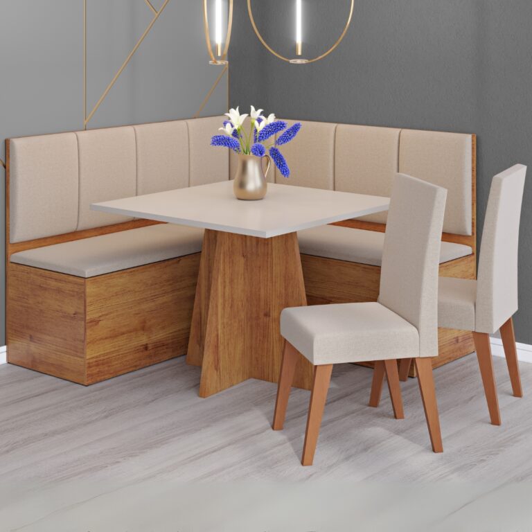 Conjunto Canto Alemão + Mesa Mon/Soberano + 2 Cadeiras Milão – VIERO MÓVEIS – 1.36m