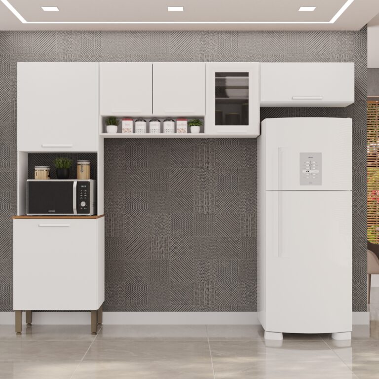 Cozinha 3 peças New Valencia com vidro fume, estrutura em MDP com pintura touch de alta resistência e espaço para microondas.