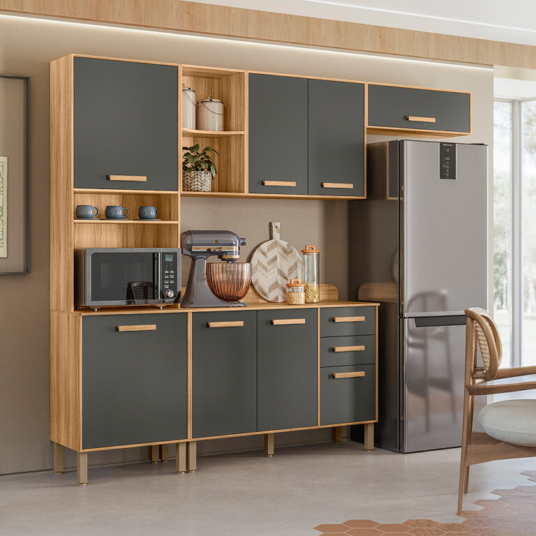 Cozinha Maria Flor Freijó/Chumbo – NICIOLI – 2.60m