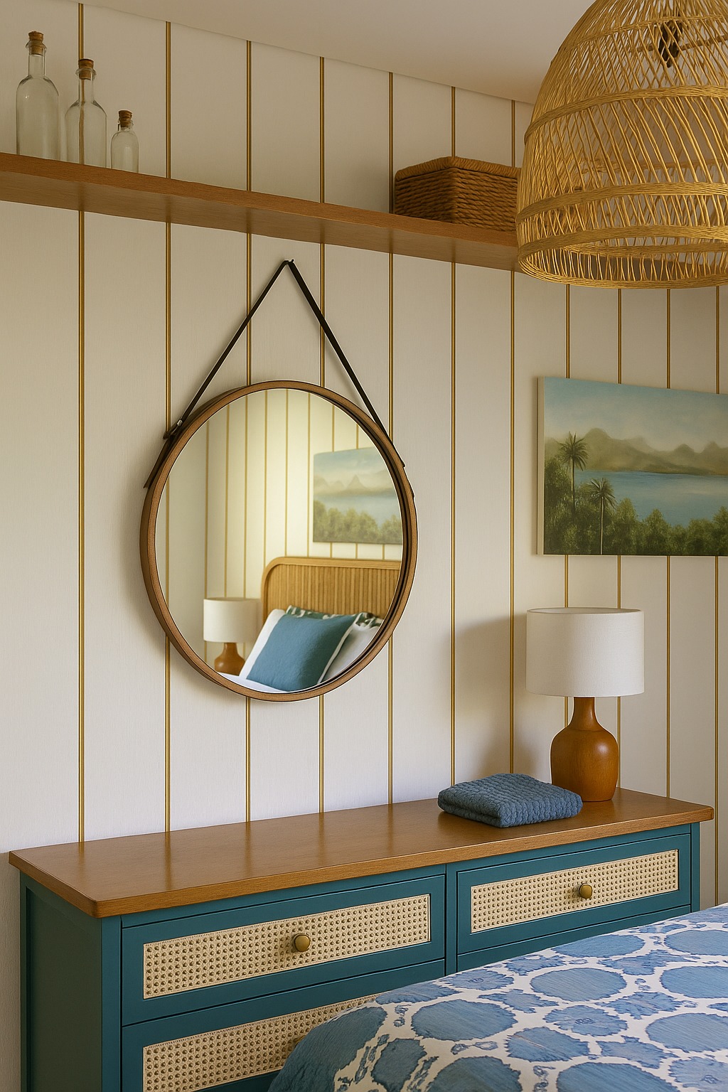 • Espelho decorativo com moldura em acabamento Cinamomo