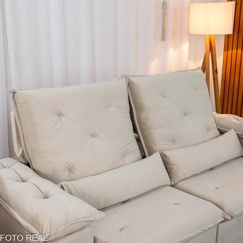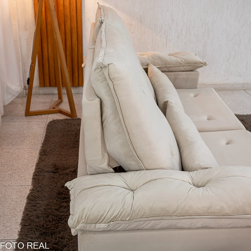 Informamos que é normal haver uma abertura entre os módulos dos sofás retráteis. Essa abertura é necessária para evitar atrito entre os módulos durante o movimento de abrir e fechar, prevenindo o desgaste do tecido.