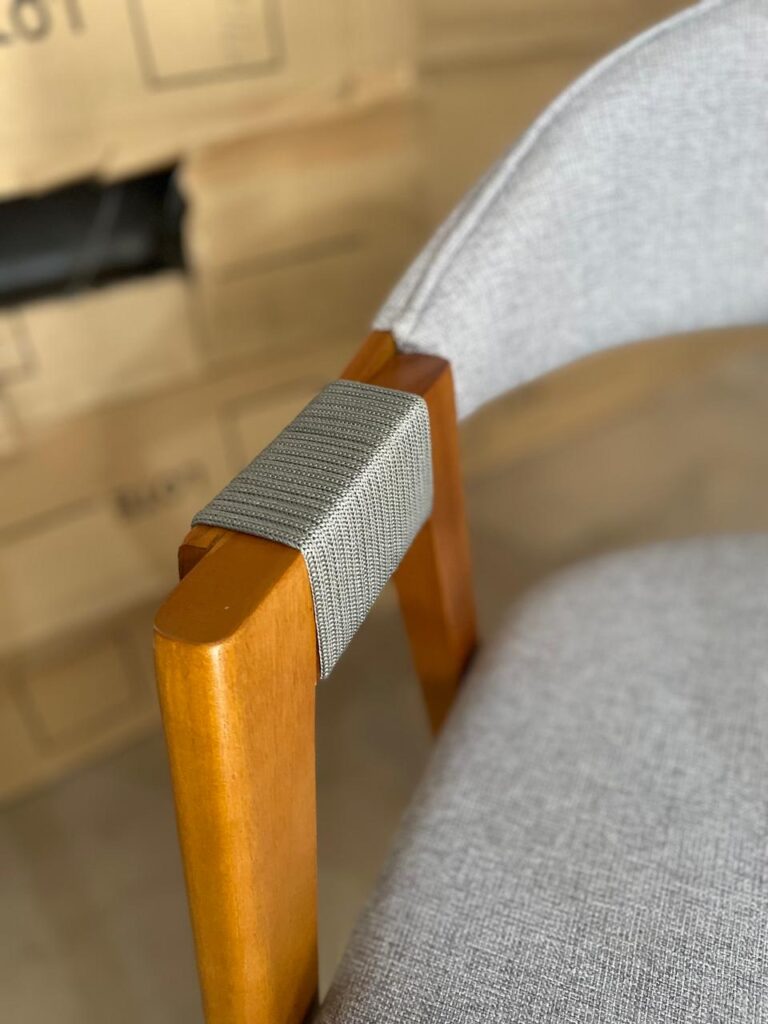 - Detalhe com corda náutica na cor prata nos braços