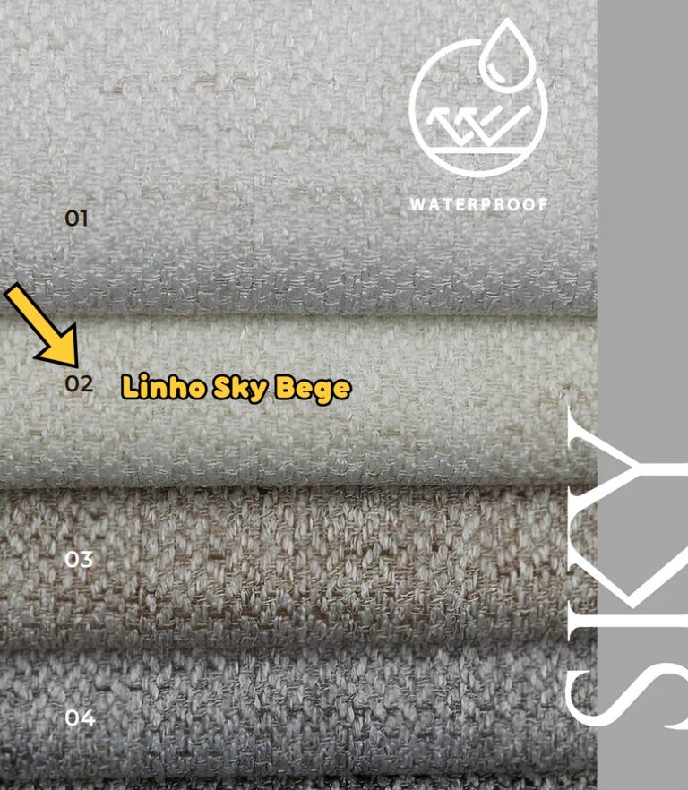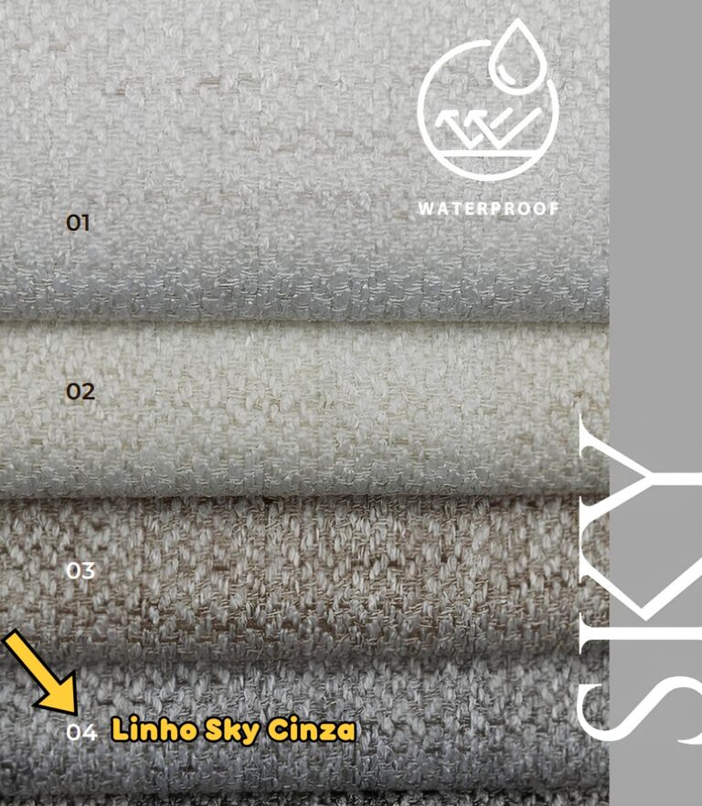 - Revestimento em tecido Linho Sky cinza – resistente à água