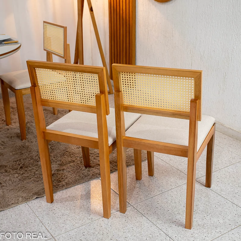 2 Cadeiras Santorini Linho Bege Madeira Maciça – Minas Plac – 0.44m