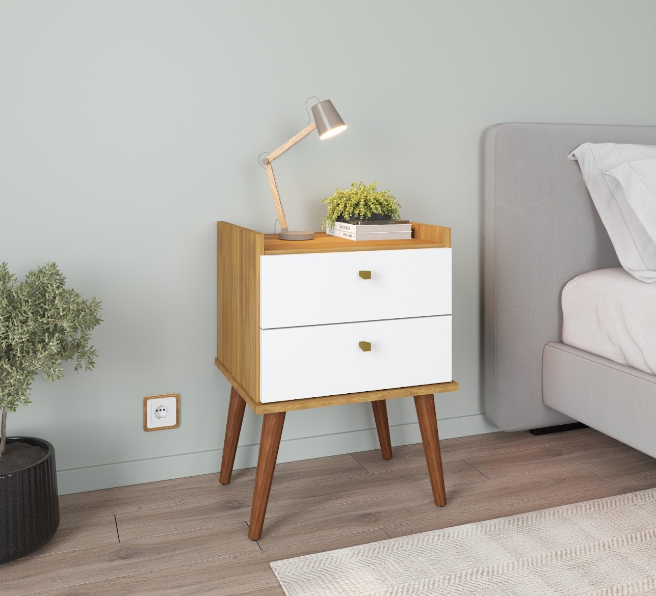 - Mesa de cabeceira modelo Aroma com 2 gavetas.