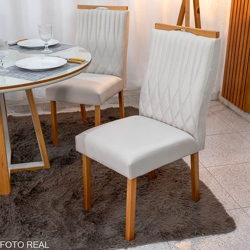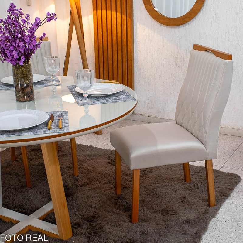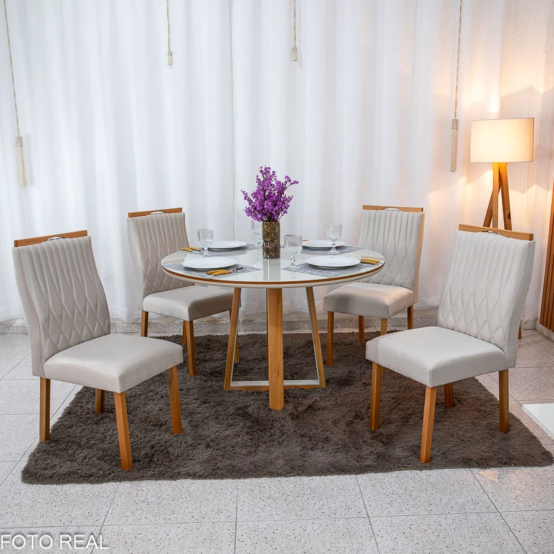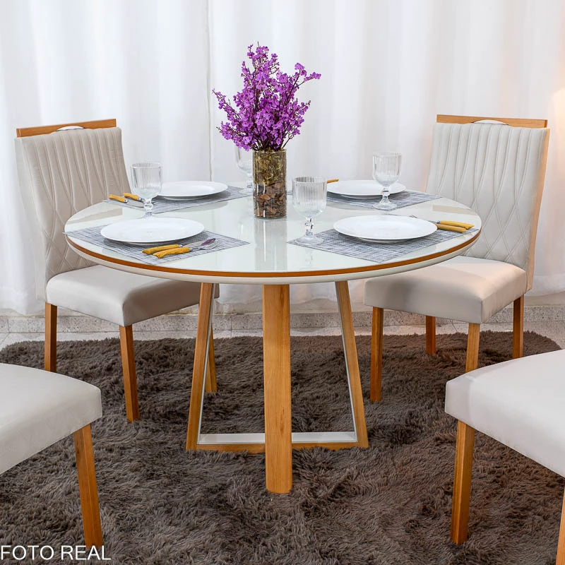 - Design moderno com mesa redonda de 1.20m que otimiza espaços