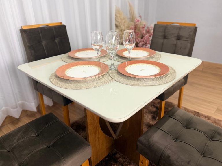 Mesa de Jantar Madri 0.90×0.90 com 4 Cadeiras Londres – Minas Plac – 0.90m