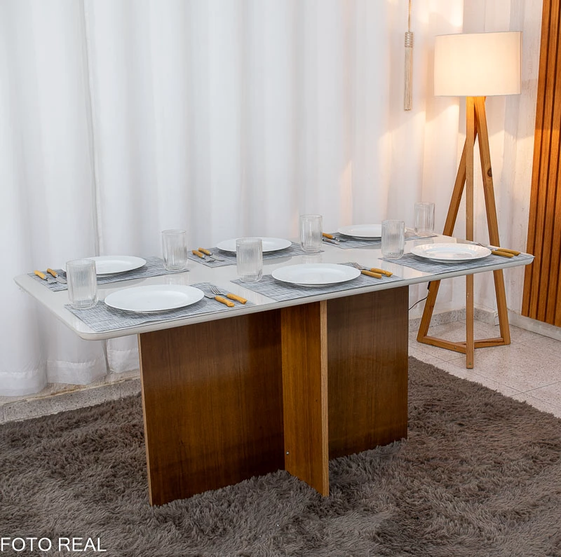 - Tamanho ideal para acomodar 6 cadeiras