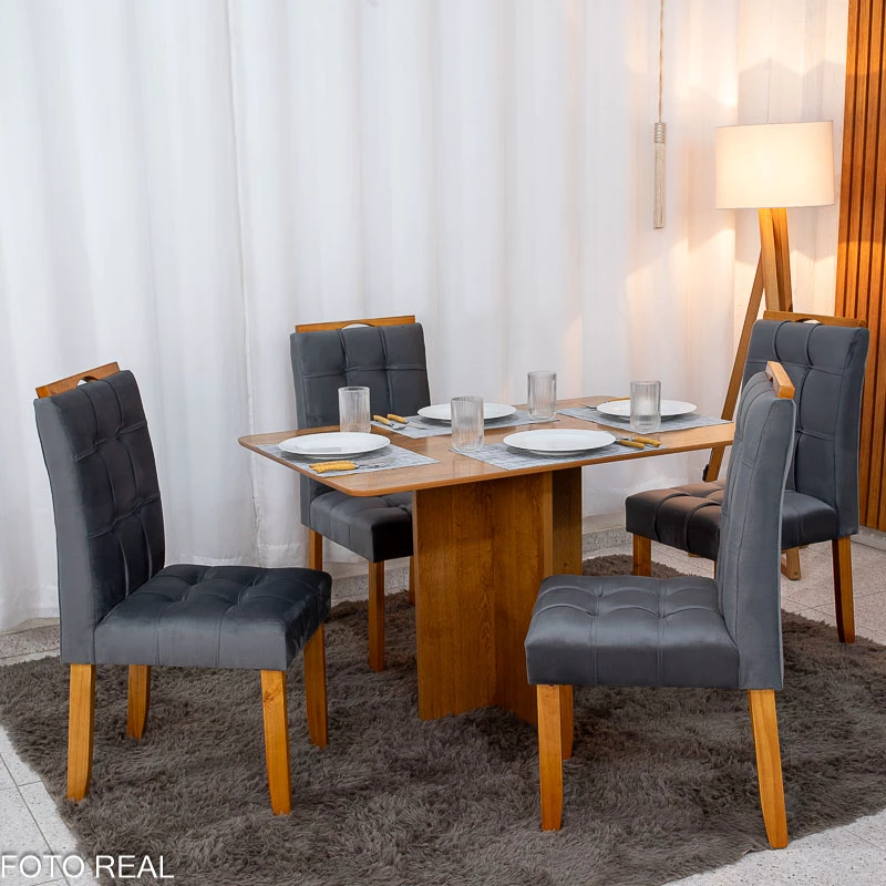 - Duas opções de cores em tecido veludo para as cadeiras