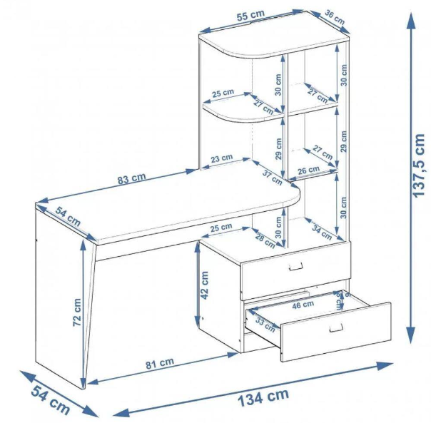- Tampo de 25 mm e prateleiras com acabamento arredondado