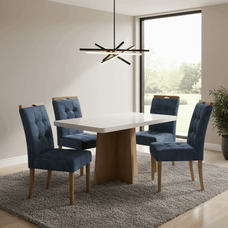Mesa Jade 120×80 (Tampo 40mm) +4 Cadeiras Sophia – VALDEMÓVEIS + WM DECOR – 9.5/TD