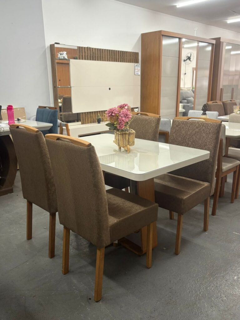 Conjunto Mesa Sintonia + 4 Cadeiras Priscila – LOPAS + AVALON DECOR – 1.20m