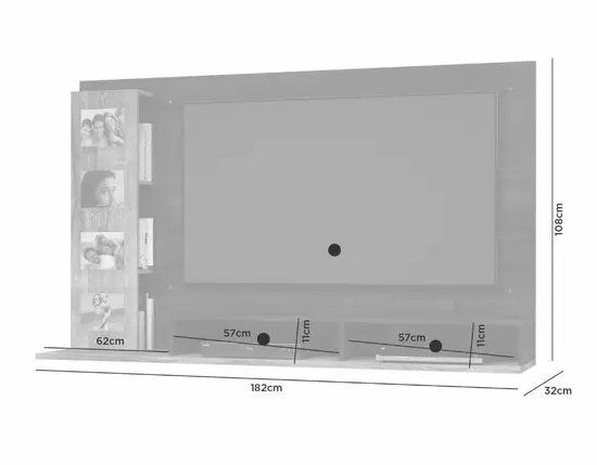 - Painel organizador para TV de até 65 polegadas