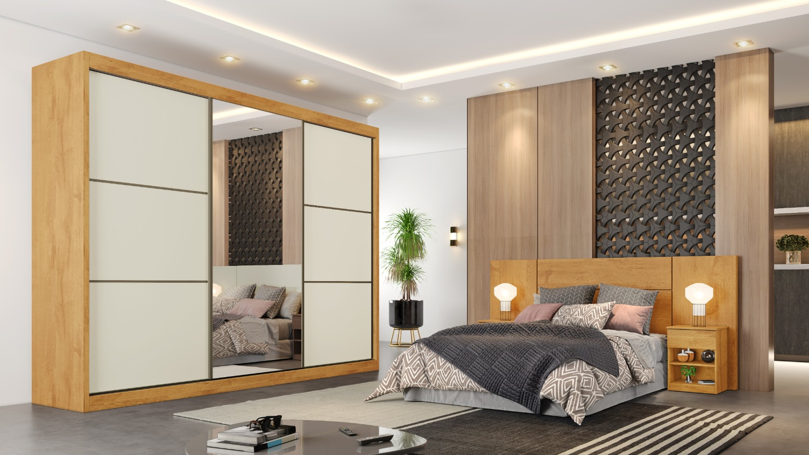- Roupeiro 3 portas com 1 porta espelhada deslizante