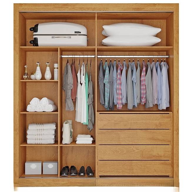 Roupeiro Guarda Roupa Lugano, com 02 portas de correr (01 ripada e 01 com espelho) e 4 gavetas, feito 100% de MDF pela MadeMarcs Móveis