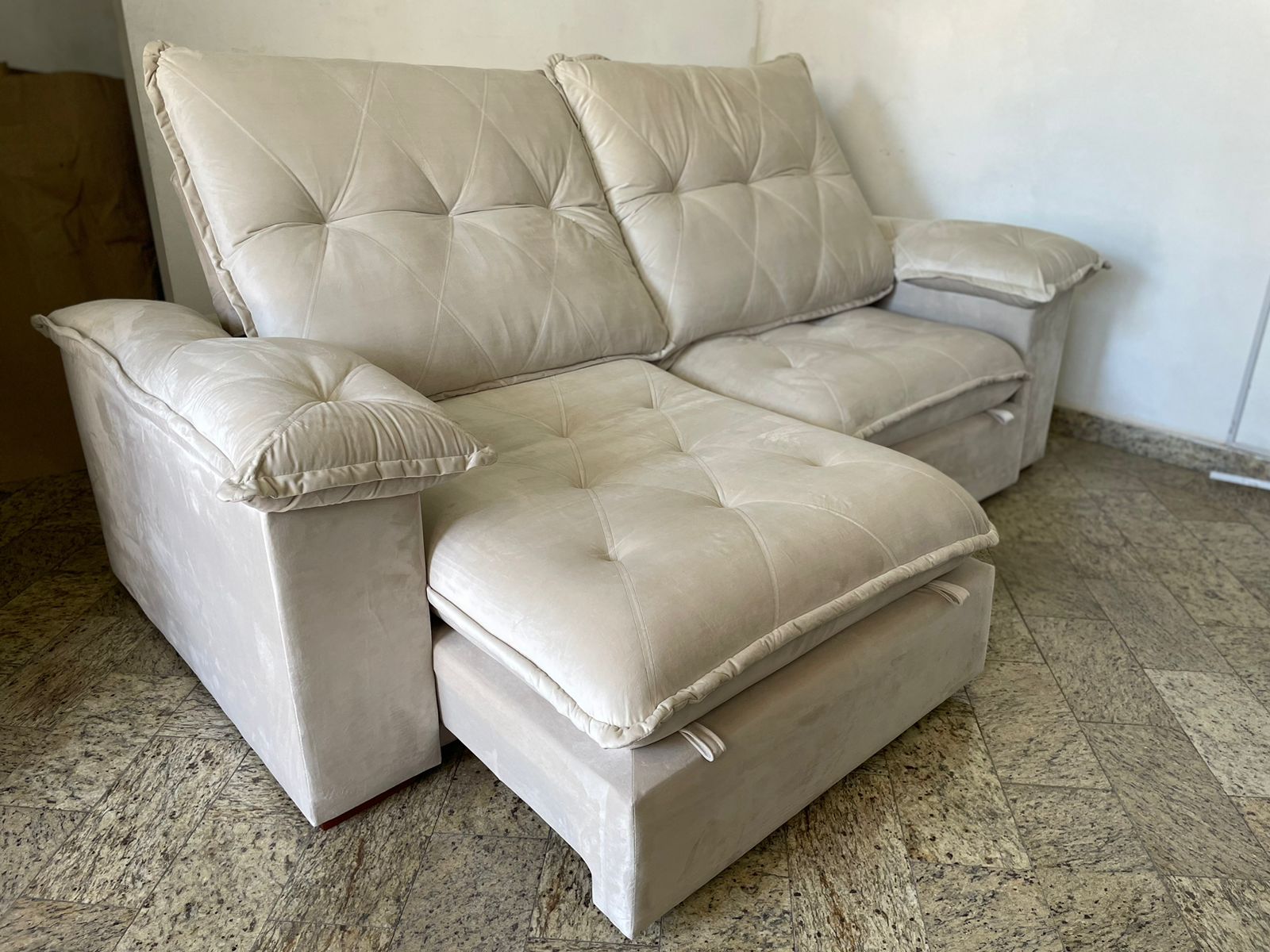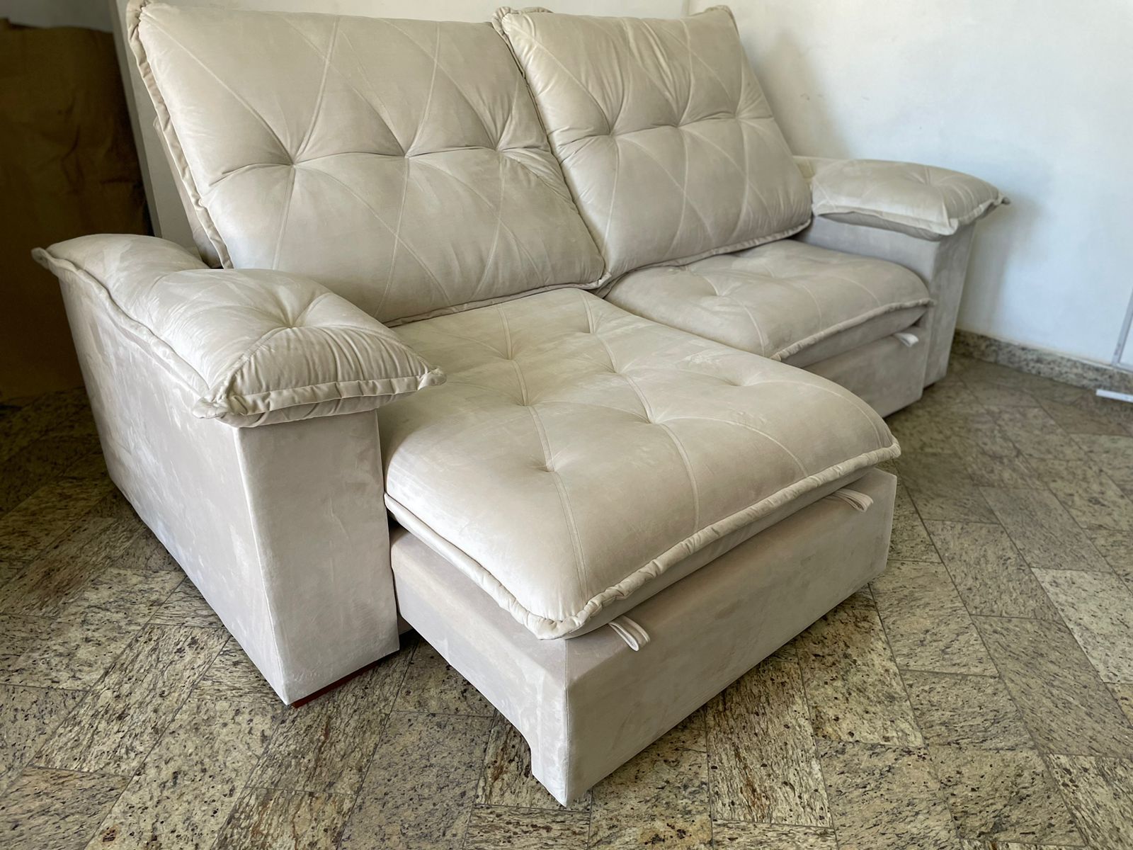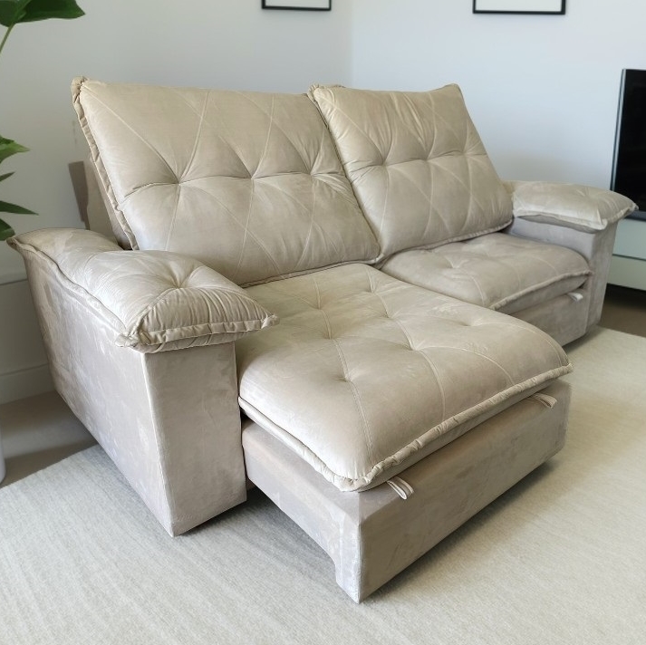 - Sofá retrátil e reclinável Corvette 290 em veludo bege