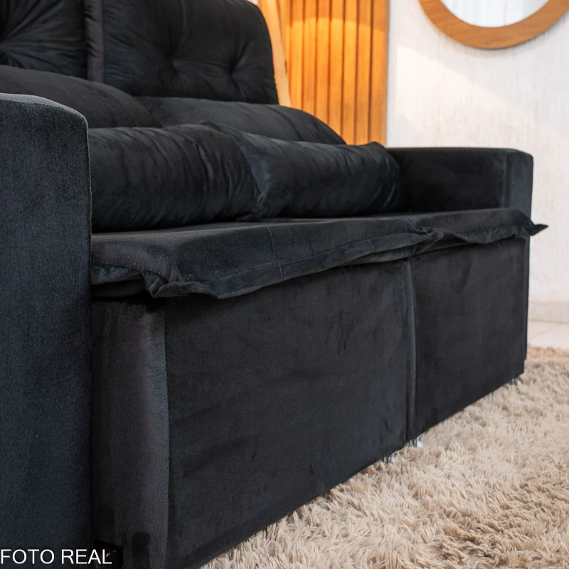 É normal haver uma abertura entre os módulos dos sofás retráteis. Essa abertura é necessária para evitar atrito entre os módulos durante o movimento de abrir e fechar, prevenindo o desgaste do tecido.