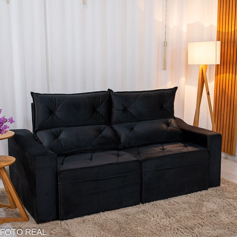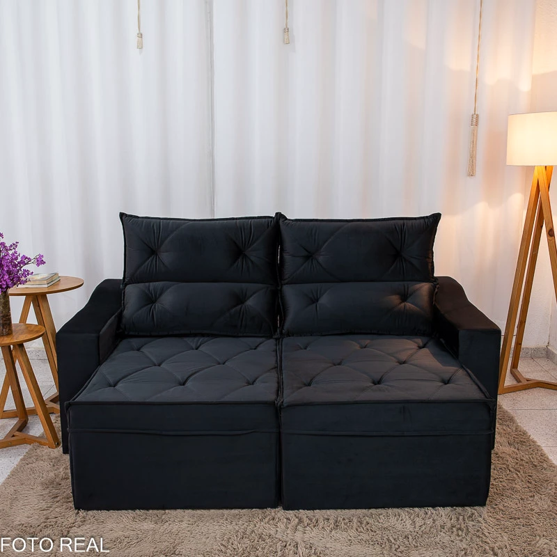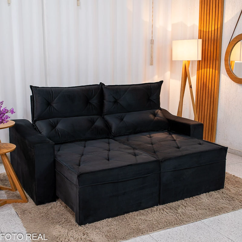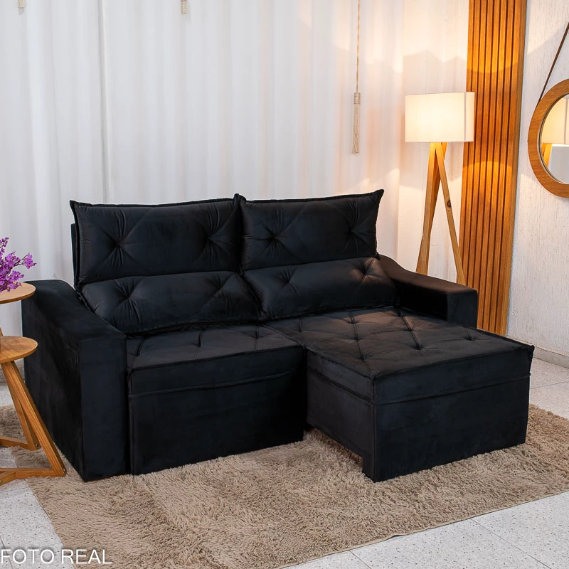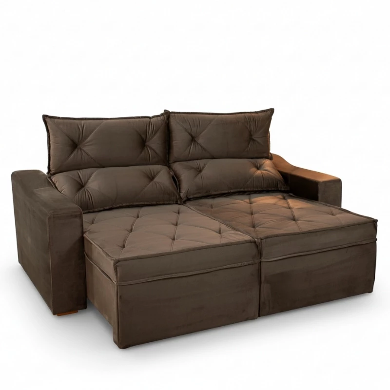 - Sofá retrátil e reclinável com sistema de catraca de ferro